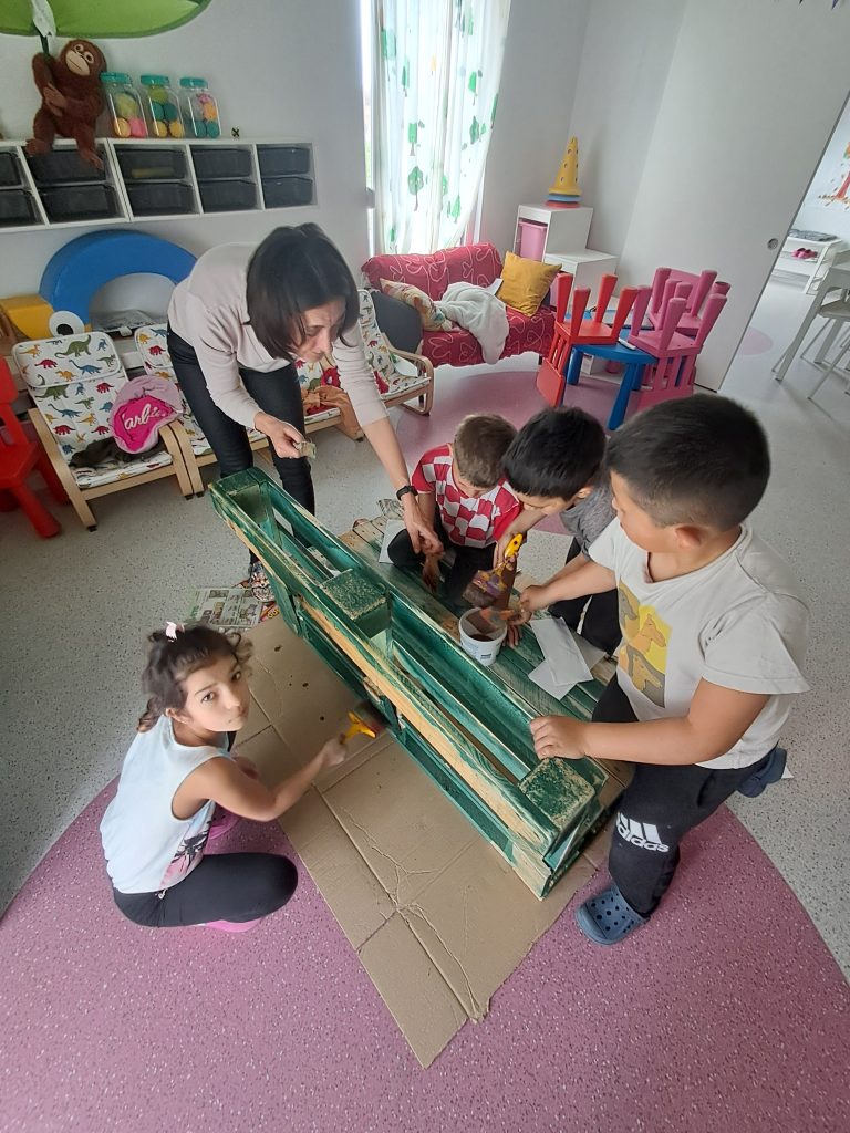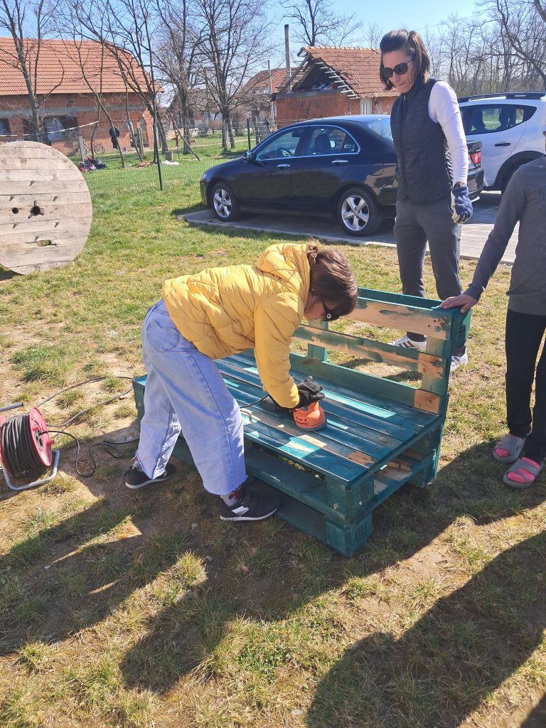 S ljepšim vremenom i dužim danima, polako smo se počeli pripremati za topli dio godine kada ćemo više vremena provoditi na našem igralištu i dvorištu. Kako nam bi bilo što ljepše i ugodnije, nabavili smo palete od kojih nam je striček Damir napravio prekrasne klupice koje su djeca pomagala sklapati, brusiti i bojati. Još nije gotovo, ali čim se popravi vrijeme i završi cijeli projekt, ugodno ćemo se smjestiti u našem dvorištu i uživati u aktivnostima vani!